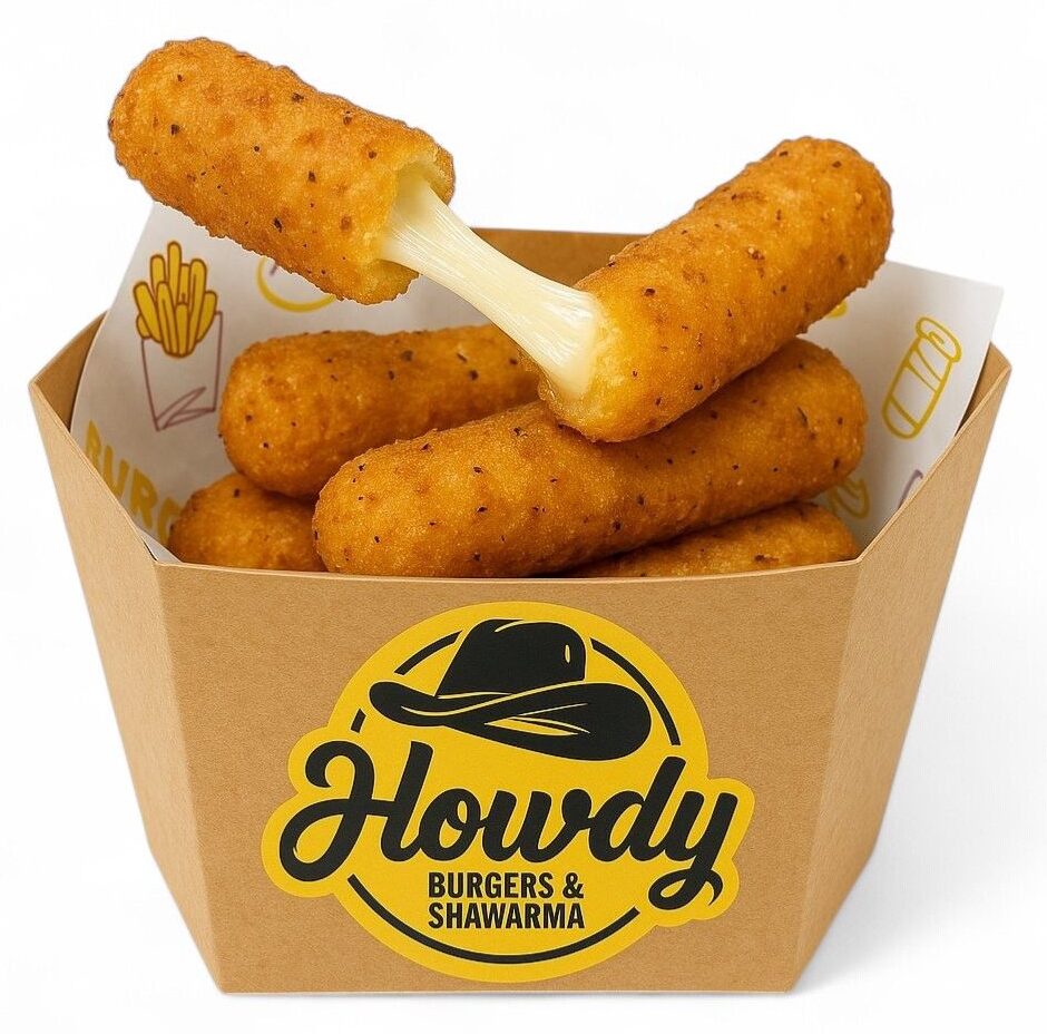 Crispy, gooey mozzarella sticks loaded with melted cheese and dusted with our signature Howdy masala blend for a spicy, savoury kick. Cheesy, crunchy, and full of flavour!